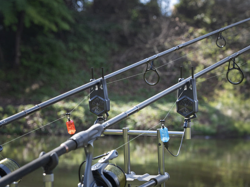 Die Bissanzeiger verfügen über die abnehmbaren snag gears, die dafür sorgen, dass die Rute bei den starken Bissen nicht aus dem Bissanzeiger "herausfliegen" kann. Das 2+1-Basisset enthält einen roten und einen blauen Bissanzeiger zusammen mit dem Empfänger, aber im Falle von TECTON ist es möglich, bis zu vier zusätzliche Farben (gelb, grün, lila, weiß) zu kaufen. Damit haben Sie die Möglichkeit, die Bissanzeiger mit der von Ihnen bevorzugten Diodenfarbe für das Set zu erwerben. Dies ist jedoch nicht der einzige Vorteil der breiten Farbpalette. Dem aufmerksamen Auge wird nicht entgehen, dass sich auf dem Empfänger bis zu sechs Dioden befinden, so dass Sie sechs verschiedene TECTON-Bissnazeiger an einem Empfänger koppeln können, wobei Sie die unterschiedlichen Farben der Bissanzeiger sicherlich schätzen werden.