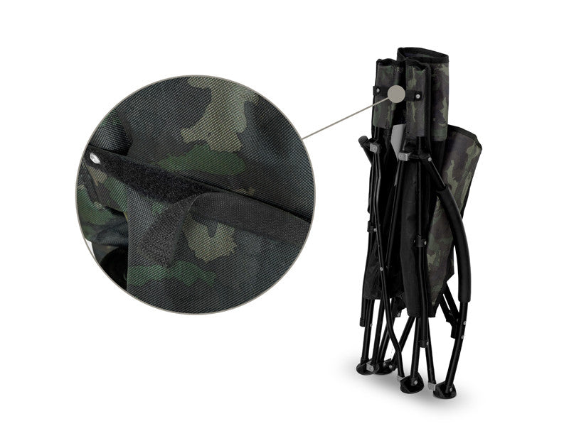 Wie die anderen Sessel aus der BANX-Serie ist auch das Modell LOWRIDE mit dem langlebigen 600D-Stoff ausgestattet, der sich durch eine lange Lebensdauer auszeichnet. Das einzigartige und originelle Aussehen des Sessels wird durch das patentierte BANX-Camouflage-Muster auf dem Stoff unterstrichen. Für noch mehr Komfort sind die Armlehnen des Sessels mit weichem Schaumstoff gepolstert und die Rückenlehne ist mit einem festen Netzgewebe versehen, das für eine bessere Belüftung sorgt.
