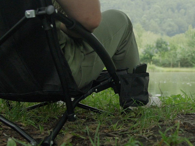 An der Seite des Sessels befindet sich eine praktische Tasche, in der Sie Ihr Lieblingsgetränk, Ihr Telefon oder kleine Accessoires verstauen können. Auch ein Griff für den bequemen Transport ist vorhanden. LOWRIDE ist zusätzlich mit den Klettverschlüssen ausgestattet, die zur Fixierung während des Transports dienen.