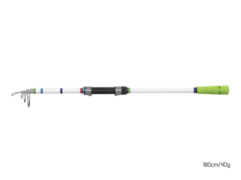 Der geteilte Griff, an dessen Ende sich ein grüner EVA-Schaumstoff befindet, ist durch seine Länge an die Hände von den kleinen Anglern angepasst. Die Rute ist mit den Ösen mit der hochwertigen SiC-Füllung ausgestattet, die eine Beschädigung der Schnur verhindern. Die Rute ist auch mit einem zuverlässigen Sattel ausgestattet, der für die verschiedenen Rollengrößen geeignet ist.